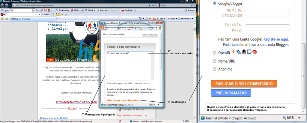 Contudo, os nossos caros leitores podem comentar na mesma pois no final de cada noticia podem carregar na hiperligação "comentario(s)" e deixarem as suas opiniões desde que não usem termos indesejados e ataques a quem quer que seja, pois os comentários só aparecerão na noticia caso respeitam as indicações anteriormente referidas.